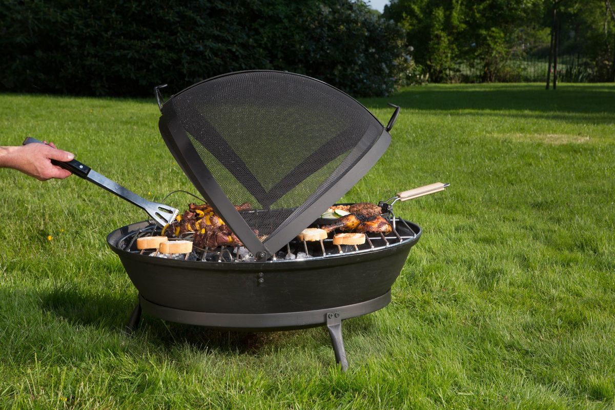 Deze BBQ met gietijzeren schaal is een aanwinstvoor uw tuin, met een doorsnee van 75 cm kunt uveel vlees of groente in één keer grillen. Het navullen van kooltjes gaat gemakkelijk doordat het rooster naar één kant kan worden opengeslagen. Door de stalen kap voorkomt u dat er insecten ofvliegen op uw vlees of groenten komen. De kap is vantwee kanten te bedienen.